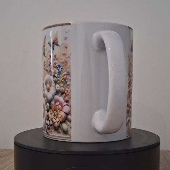 Diese liebevoll gestaltete Tasse bringt dir das Gefühl eines sonnigen Frühlingsmorgens direkt nach Hause! Wunderschöne Blumen in zarten Farben und detailreiche Schmetterlinge zaubern ein harmonisches Design, das jeden Kaffee- oder Teemoment besonders macht. Perfekt als Geschenk oder um sich selbst eine Freude zu bereiten.