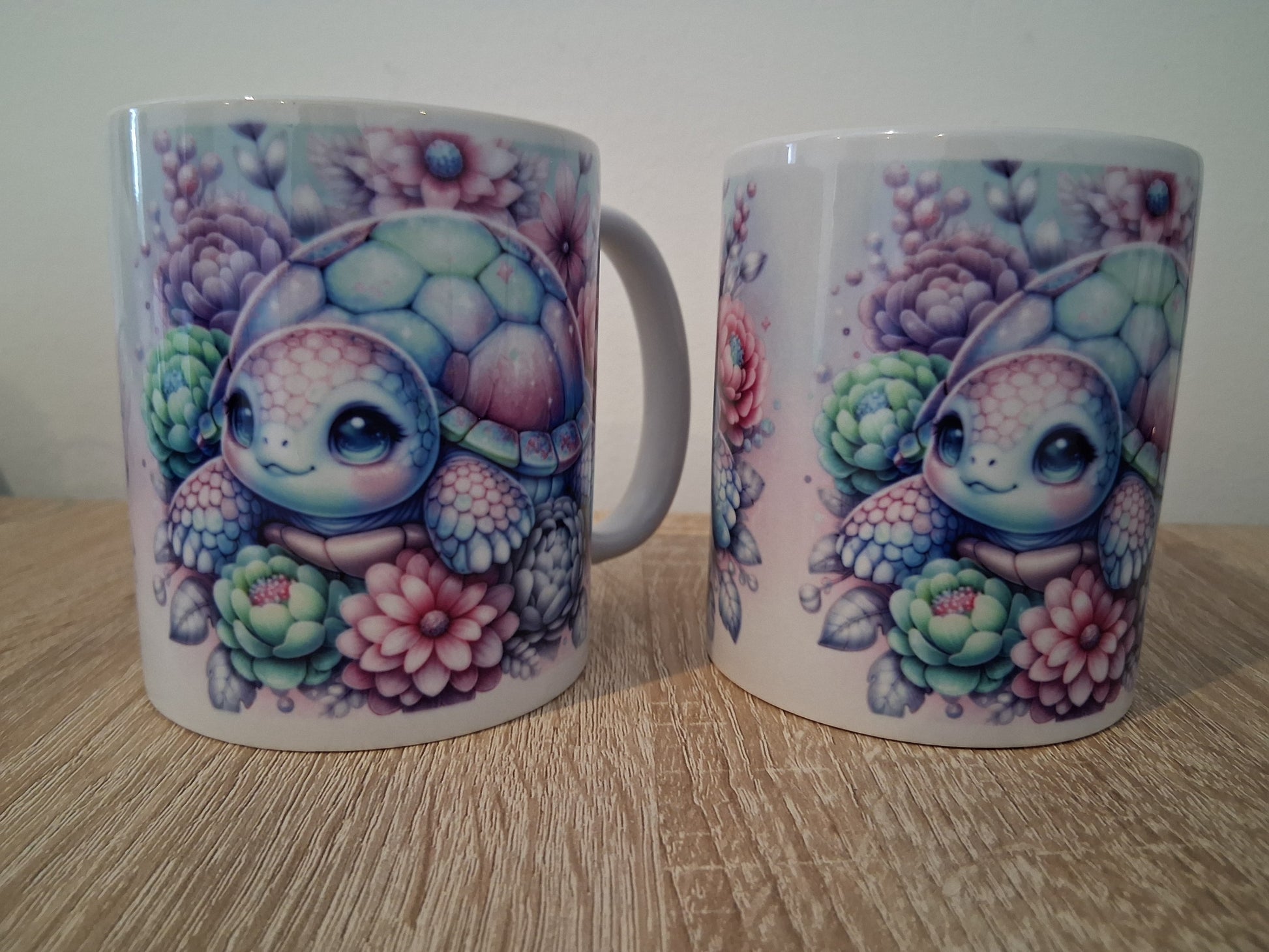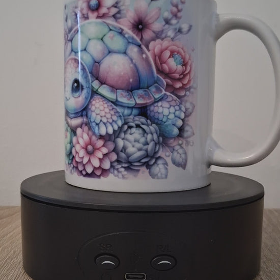 Diese bezaubernde Tasse mit liebevollem Schildkröten-Design ist ein echtes Highlight für alle, die verspielte Motive und sanfte Farben lieben. Die süße Schildkröte inmitten farbenfroher Blüten verzaubert mit ihren großen Kulleraugen und bringt gute Laune auf jeden Frühstückstisch. Ideal als Geschenk oder zum Selbstbehalten!